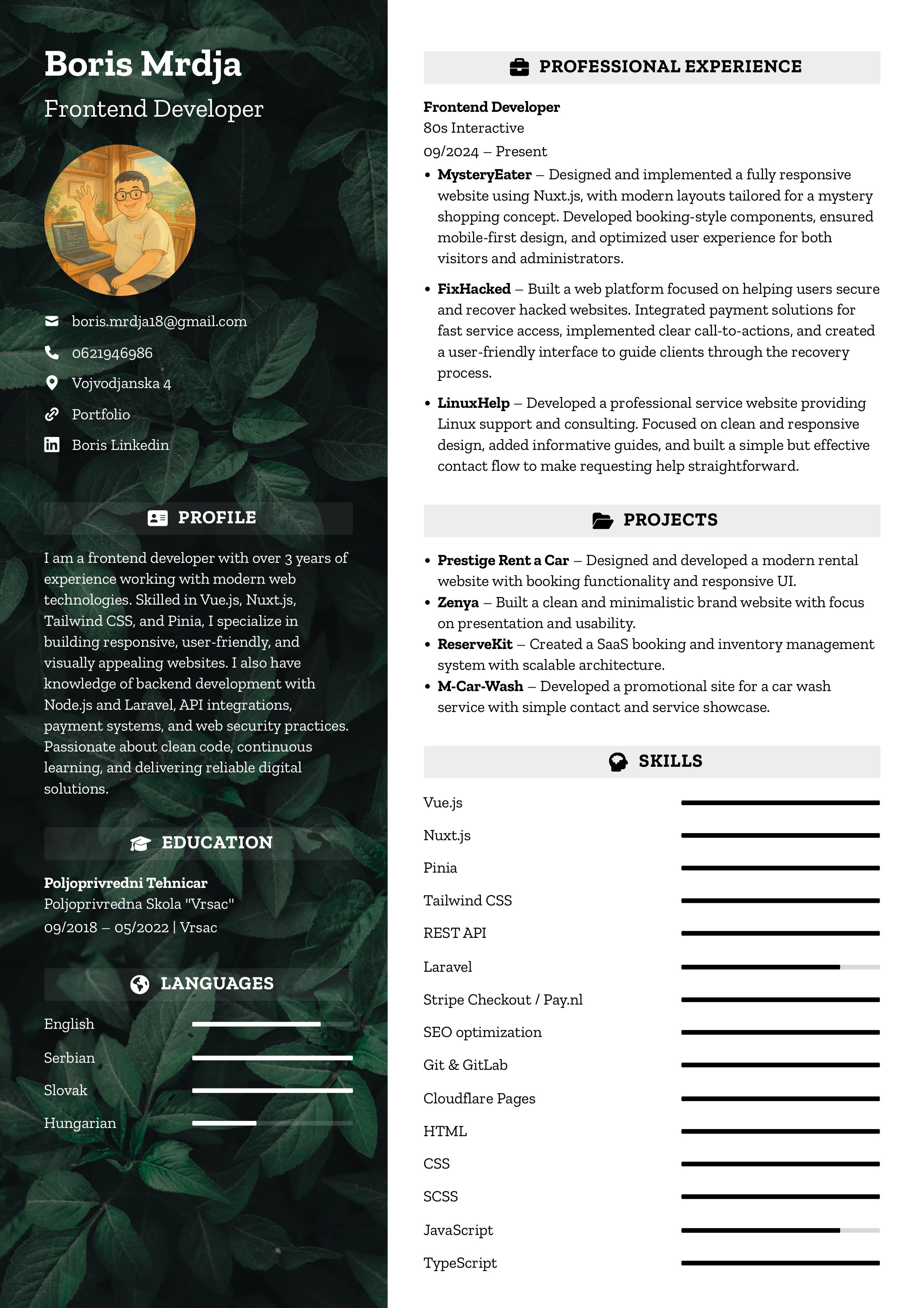 I build fast, responsive websites and Vue/Nuxt applications. From pixel-perfect designs to clean, maintainable code—let’s create something great together.